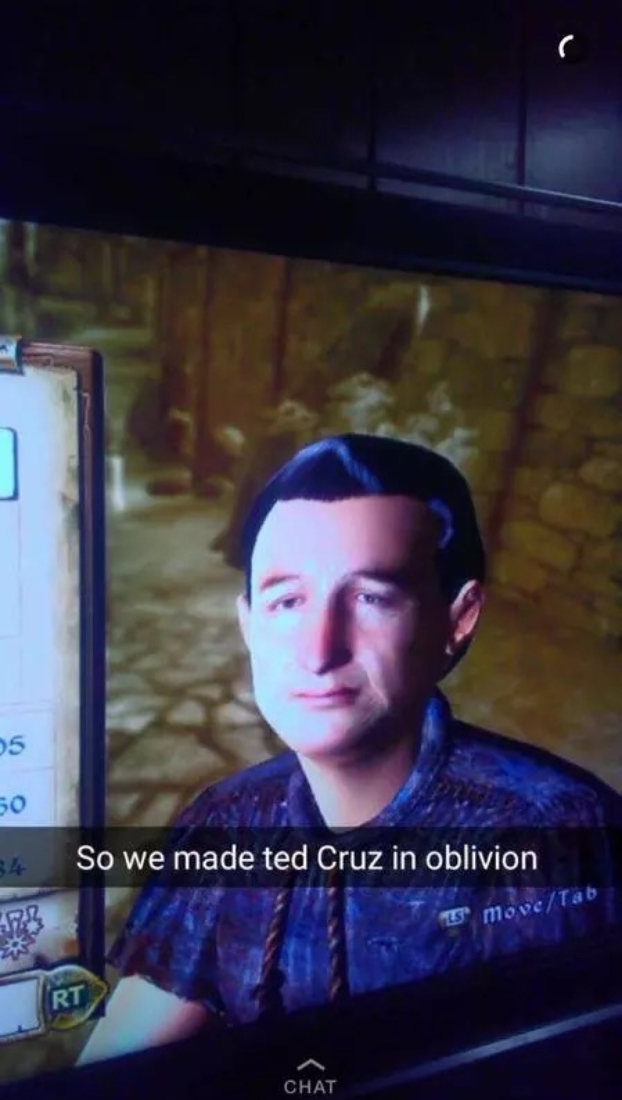 The funniest thing is Oblivion is widely remembered for being unable to create decent looking faces. The fact that this is so amazingly accurate… Just what IS Ted Cruz?